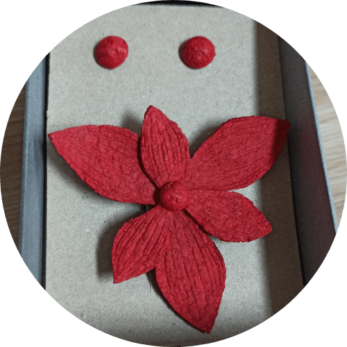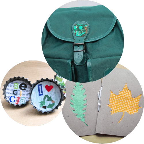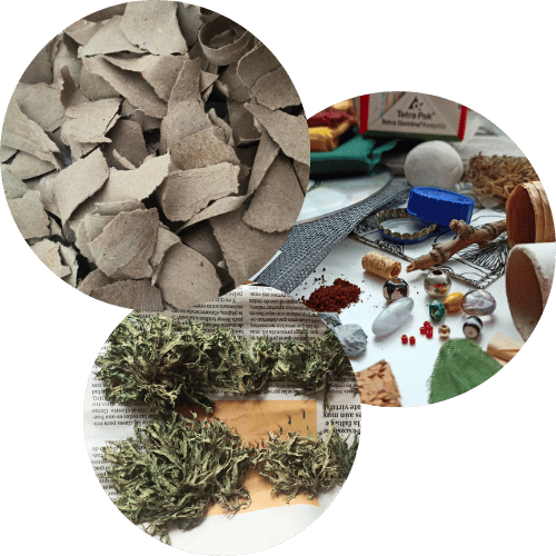 Papel maché y cartón reciclados, materiales reutilizados y elementos naturales